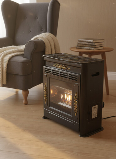 Qaz sobası / Qazla işləyən otaq isidicisi - Yanacaq növü: təbii qaz - Ön hissədə geniş şüşə pəncərə – alovu vizual izləmək və istilik paylanmasını görmək üçün - Yuxarı hissədə ventilyasiya qəfəsi ...