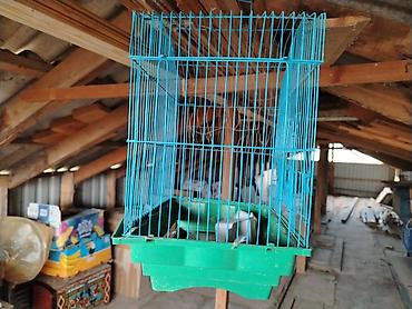 Quş qəfəsi - Material: metal şəbəkə (mavi rəng) + plastik altlıq