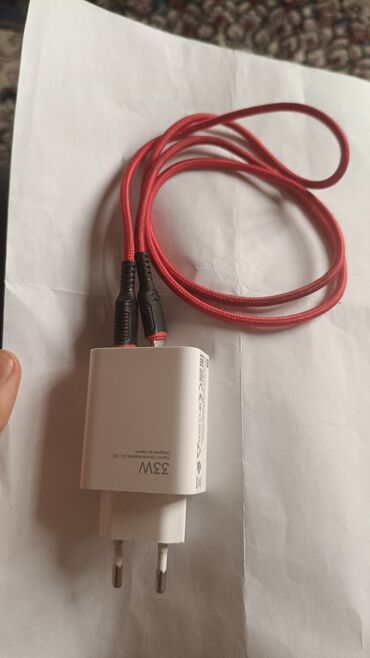 - Aksesuar: 33W divar adaptoru və paracord tipli qırmızı USB‑C kabel (şəkildə iki uclu başlıq görsənir).