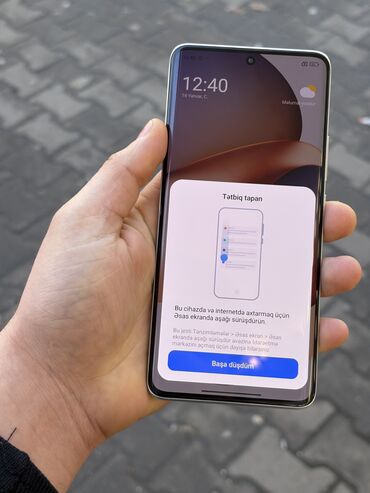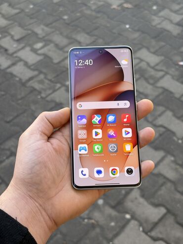 Redmi smartfon - Arxa hissədə böyük dairəvi modulda AI Camera yazılı çoxlu kamera sistemi - Tam ekran ön panel, yuxarıda mərkəzdə kamera üçün kiçik çıxıntı (punch‑hole) - Qara rəngli korpus, düz k...