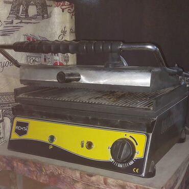 - Kontakt qril (panini/sandviç presi): üstə-aşağı çertli tökmə plitələr, termostatla 50–300°C arası idarəetmə, indikator lampaları, istiliyədavamlı tutacaq, elektriklə işləyir.