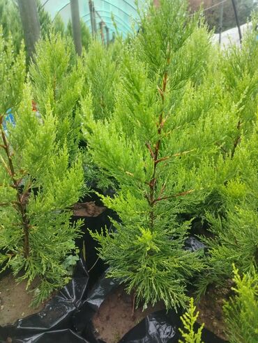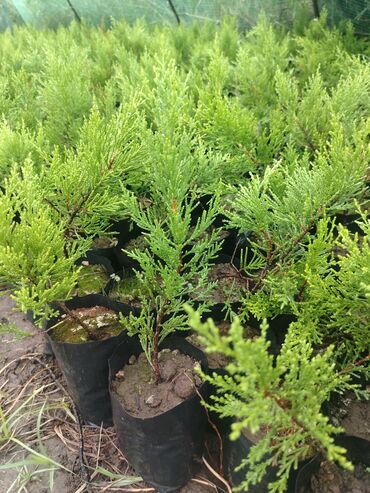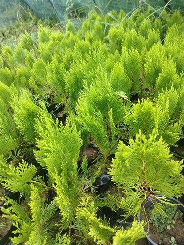 Məhsul: Thuja (qızıl rəngli, sütunvari ardıc) fidanları Xüsusiyyətlər: - Növlər: dekorativ qızılı-sarı və tünd-yaşıl məxməri iynəyarpaqlı sortlar - Hündürlük: təqribən 60–100 sm arası fidanlar - I...