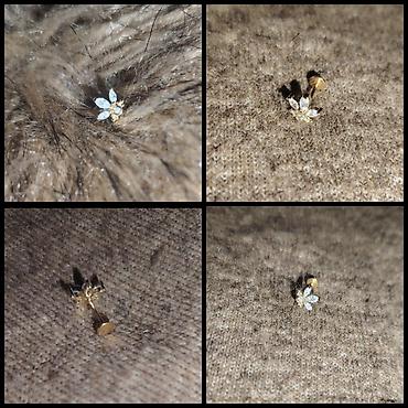 - Bəzək daşları: Ağ parlaq şüşə/kristal daşlar. Çiçəyi 4 ləçək və mərkəzi daşla, qövs hissəni isə xırda damcı formalı asimmetrik daşlar bəzəyir.