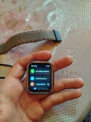 Real Alicilar Narahat etsin endirimde edecem telcili satilir Ağıllı saat – kvadrat ekranlı, toxunma idarəetməsi. Menyuda fitnes, ürək döyüntüsü, yuxu izləmə, addım sayğacı, kalori, təzyiq/nəbz göstəriciləri, idman rejimləri, hava proqnozu, mesaj/zanq bildirimi, musiqi nəzarəti, taymer/saniyəölçən, fənər, siqnal və s. tətbiq ikonları mövcuddur. Klassik analoq üslublu saat üzü dəstəklənir, bir neçə fərqli watchface seçimi var.