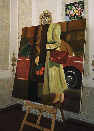 Rəsm tablo – “Körpü üzərində yağış altında cütlük” - Texnika: Kətan