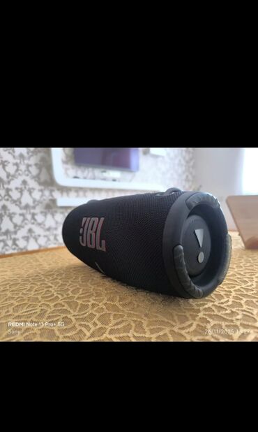 JBL Xtreme 3 prutativ Blutooth akustik sistemi. Guclu derin basli stero sas , yan sassiv radiatorlar va iri akustik kamera sayasinde yuksak sas saviyyesi. Blotuz simsiz baglanti, smartfun, planset va notbuka suretli qusulma . USB puverbanq cixisi telfun ve diger qurgulari dinamikden enerji ile duldurma imkani . USB - C sarj portu , muasir , suratli va rahat sarj . Suya va toza davamli korpus (İP daracali serya) aciq havada , daniz kanarinda va idmanda istifadaya uygun. Uzunmuddatli batareya bir sarjla gunlarla fasilasiz dinlama. PartiyBoost/coxdinamikli qusulma dasdayi , eyni seriyadan olan diger JBL dinamikleri ila qusularaq sasi genislendirme imkani . mohkam toxumali matiral va rezin quruyucular , zarbaya dayaniqli konostroksiya , dasinma ucun barkidici halqa ,kamar/qusqu ila asan dasima . Korpus uzarinda nazarat duymalari , status indikaturu . Olcu formasi silindirik, stulustu va ya yatalay yerlasdirmr ucun sabit altliq . Bir sozle 15 gun istifade olunub 1 cut var biri 400 manata satilir sun qiymetidi ciddi alicilar narahat etsin.