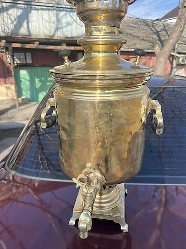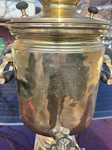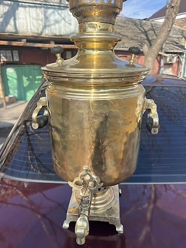 Antik samovar 10litr– “İvan Batashev, Tula” istehsalı.18medalı var. - Material: bürünc/pirinç korpus, klassik kömür/odunla işləyən samovar konstruksiyası - Üslub: Rus imperiya dövrü dizaynı, silin...