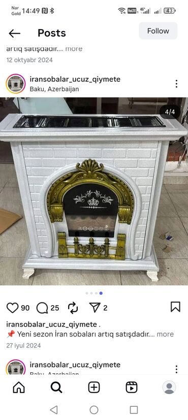 Behkaran qaz sobası – dekorativ klassik dizaynlı otaq isitmə cihazı.