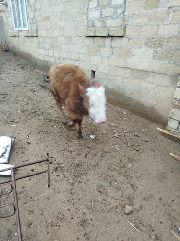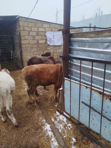 Satlıq buzov - Növ: iri buynuzlu heyvan, buzov - Rəng: açıq-qonur (qəhvəyi) tonlarda, alnında açıq ləkələr - Yun örtüyü: qalın və dalğalı, soyuğa dözümlü - Qulaqda nişan/etiket görünür - Bədən qur...