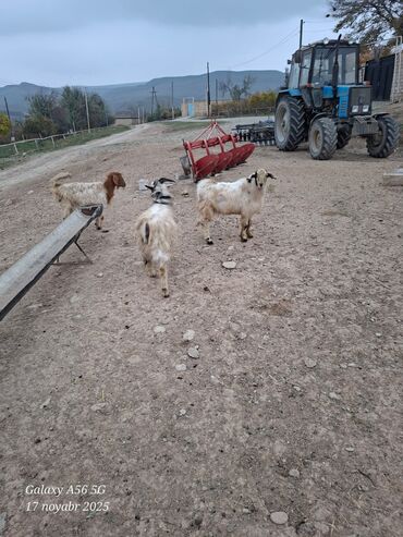 Satılır: keçilər - Say: 3 baş - Növ: yerli dağ keçisi tipli (uzun tüklü) - Rəng: ağ-qəhvəyi qarışıq, biri qırmızı başlı - Cinsiyyət: şəkillərdə erkək fərdlər görünür - Xüsusiyyətlər: sərt iqlimə d...