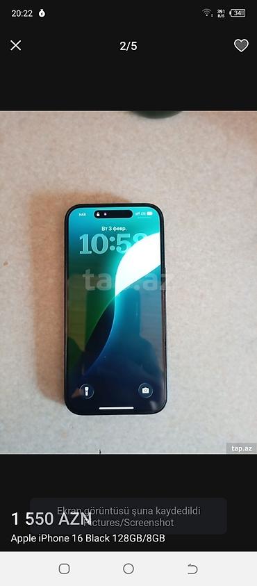 İphone 16 128gb 100% pil (qara rəng) İdeal vəzziyətdə Çızı ön ekranda və korpusda yoxdu Ancaq bir qıraqında yüngül çızıq var