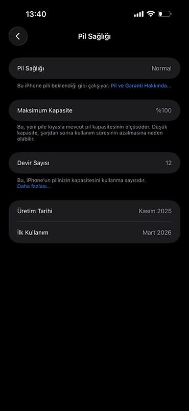 - Batareya məlumatı: İstehsal tarixi – Noyabr 2025, İlk istifadə – Mart 2026