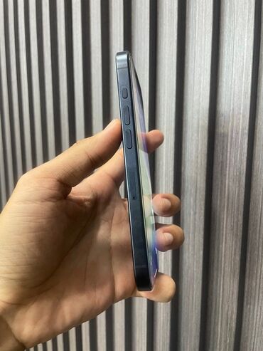 Apple iPhone (mavi rəng, üçlü arxa kamera) - Gövdə: mat mavi arxa panel, düz kənarlı dizayn - Arxa kamera bloku: 3 linza + LED flaş - Ön hissə: tam ekran, Face ID üçün ön sensor sahəsi - Port: aşa...