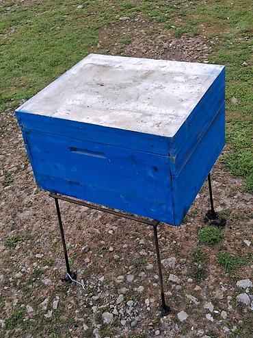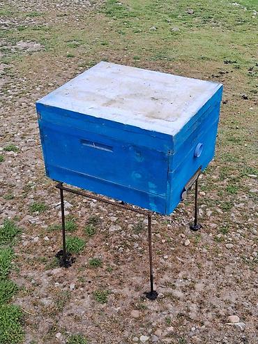 Arıçılıq üçün taxta arılar evləri (künclü-çərçivəli tip). Mavi rəngdə boyanmış korpuslar bir neçə blokdan ibarətdir, giriş yarıqları və havalandırma deşikləri var. Üst hissədə dalğalı dam örtüyü il...