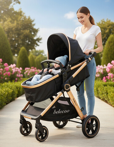 Belecoo uşaq arabası - Rəng: qara, qızılı detallarla - Yüngül və