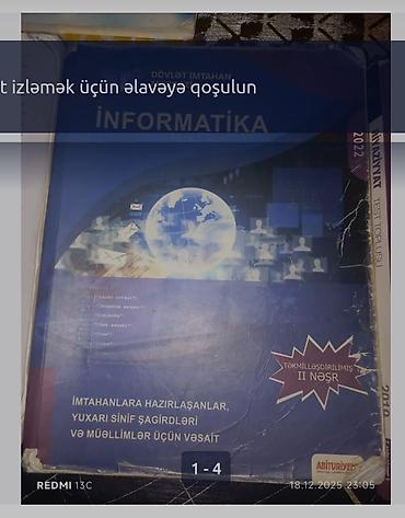 İnformatika vəsaiti DİM proqramına uyğun hazırlanmış olub, mövzu izahları və test tapşırıqları ilə sistemli hazırlıq üçün uyğundur. Abituriyentlər və müəllimlər üçün kompleks hazırlıq dəstəyi verir. real alıcı olsa əlaqə saxlasın endirim olacaq 50 ə yaxın kitab var