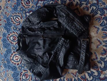Qara rəngdə qadın dəri pencəyi. Bu pencək dəri və ya dəri görünümlü