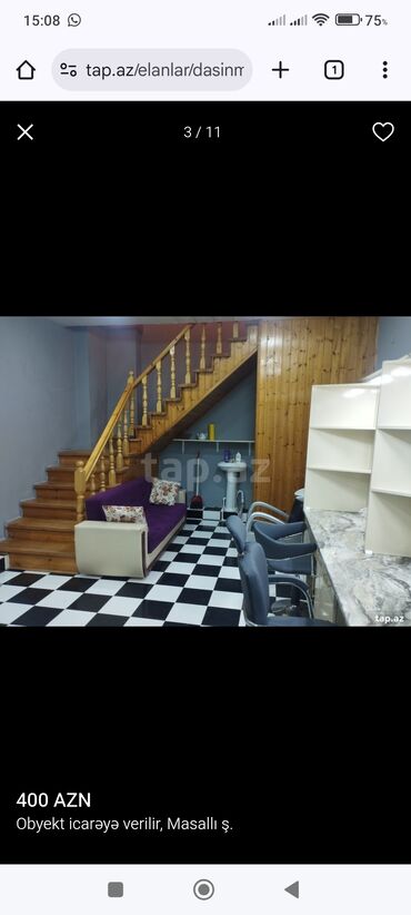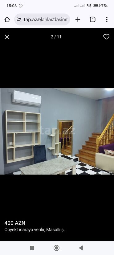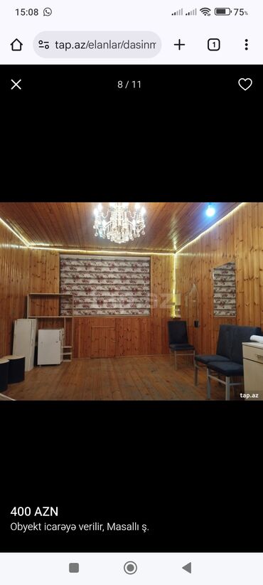 - Üst mərtəbə: taxta dekorlu geniş otaq, çilçıraq, led işıqlar, pərdələr, əlavə rəflər və oturacaqlar.