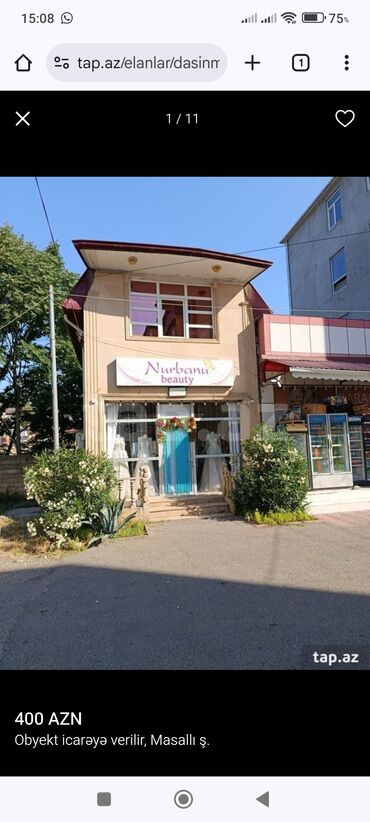 İki mərtəbəli “Nurbanu Beauty” adlı küçəvitrinli obyekt. Girişdə geniş şüşəli fasad, dekorativ qapı və vitrin pəncərələr. İçəridə salon tipli quruluş: