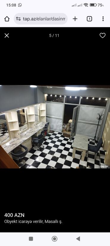 - Aşağı mərtəbə: qarşılama zonası, böyük güzgülər, rəflər və iş masaları ilə gözəllik salonu üçün hazır iş yerləri; şahmat naxışlı döşəmə, tavan işıqlanması.