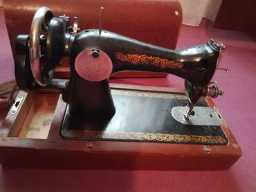 Qedimi tam iwlek .Klassik mexaniki tikiş maşını - Korpus: tökmə metal gövdə, laklı qara səth və qızılı ornament detalları - İdarəetmə: sağ tərəfdə əl çarxı və kəmər ötürücüsü ilə mexaniki işləmə -...