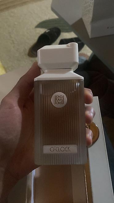 - Flakon: şaquli xətli, şəffaf-bürünc tonlu şüşə, ağ qapaq; ön hissədə brend loqosu və “O’CLOCK” yazısı