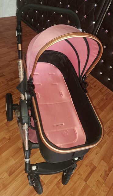 Uşaq arabası – lüks dizayn, qara/qızılı rəng kombinasiya - Tip: dönə bilən əl tutacaqlı, beşik tipli uşaq arabası - Rəng: qara (romb tikişli parça) + qızılı/bronze şassi və təkər diskləri, qəhvəyi...