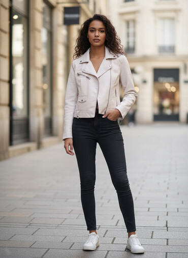 Model: Qadın moto-stil qısa gödəkçə. Çatırılma poçtla,heç bir problemi yoxdur. - Rəng: ağ