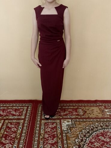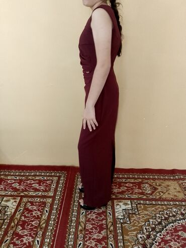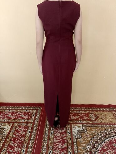 Bordo rəngli, uzun, qolsuz ziyafət/libas paltarı.