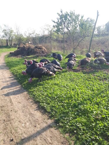 Məhsul: Hinduşka sürüsü Təsvir: - Şəkillərdə iri həyət şəraitində saxlanılan müxtəlif rəngli hinduşkalar (qara, boz-ağ və açıq krem tonları) görünür. - Qrupda həm erkək, həm dişi fərdlər var; yaşl...