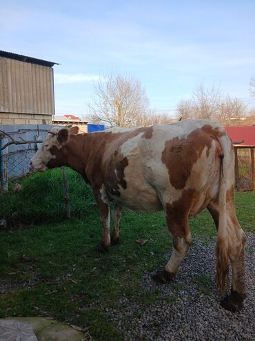 Satılır: inək 3aylığ erkək balası var - Cins: simental (şəkildə göründüyü kimi, qəhvəyi rəng, alnı açıq rəngli) - Buynuzlu, sakit xasiyyətli, otlaqda rahat güdülür - Sağım üçün münasib, süd və bu...