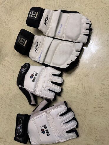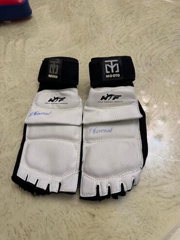 - Taekvondo əlcəkləri – Mooto, ağ-qara, barmaq çıxıntılı, biləkdə bəndli.