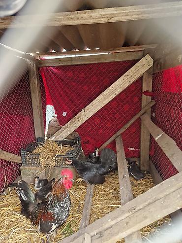 - Şəkillərdə görünən toyuqdamı konstruksiyası: taxta karkas, dal tərəfi qırmızı parça ilə qapadılmış, üstü dalğalı şifer örtüklə bağlanmış, içi samanla döşənmişdir.