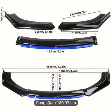 - Quraşdırma: çoxhissəli modul quruluş; bamperin altına bərkidilir (bolt/şuruplarla və ya ikiüzlü lentlə – avtoaksesuar standartları)