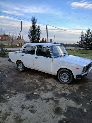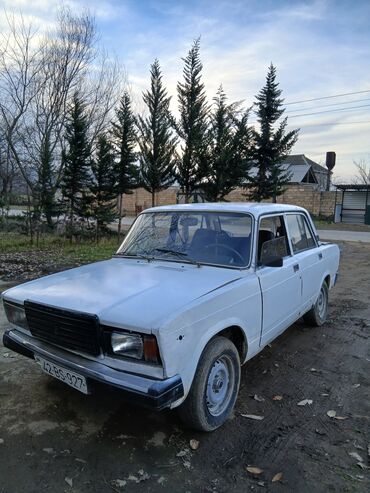 VAZ 2107 sedan - Kuzov: 4 qapılı sedan, ağ rəng - Nömrə nişanı: AZ 10-MS-370 (şəkildə görünür) - Salon: 5 nəfərlik oturacaq planı, klassik panel və mexaniki idarələr - Mühərrik: 1.5 l benzinli kar...