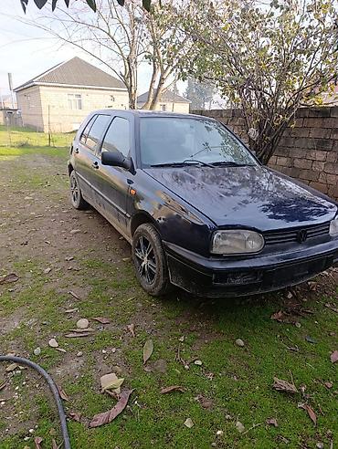 Dördqapılı qara rəngli hetçbek model "Volkswagen Golf III" avtomobili. Avtomobilin salonunda qırmızı və qara rənglərdə oturacaq üzlükləri var. Ön hissədə "Volkswagen" loqosu və 42-CF-519 dövlət nöm...