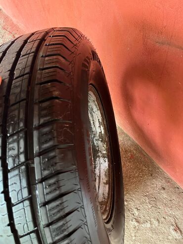 Şəkillərdə təkərin protektor görünüşü, yan divar yazıları və diskin detalları yer alır.