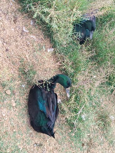 Salam 1 yaşıl baş kəkilli, 1 sona kəkilli satilir cütü 40 azn 🤌🤌🤌🤌🤌 Məhsul/təsvir: - Şəkillərdə bir neçə baş ev ördəyi görünür; boz-qara, qəhvəyi-ala naxışlı lələk örtüyü, narıncı pəncələr və dim...