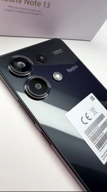 Xiaomi Redmi Note 13 – şık qara dizaynlı, güclü kamera blokuna sahib smartfon. Əsas xüsusiyyətlər: - 108 MP əsas kamera (üzərində “108MP” işarəsi) + əlavə iki kamera modulu və LED işıq – gündüz və...