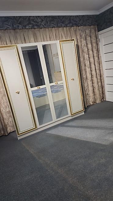- Şkaf: güzgülü ön panel, qızılı çərçivələr, daxilində asılqan və rəf zonaları üçün geniş yer.