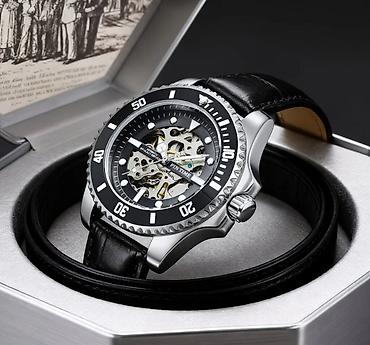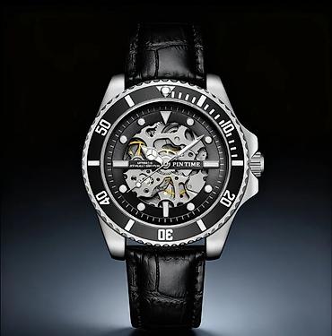 - Mexaniki (avtomatik) skeleton mexanizm: açıq siferblatda işləyən dişlilər və balans çarxı görünür.