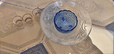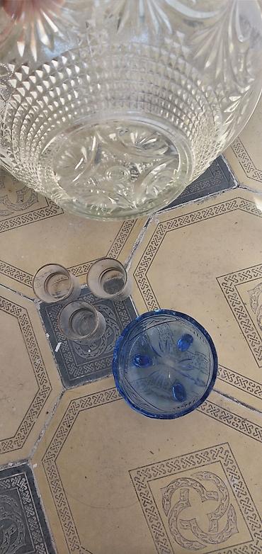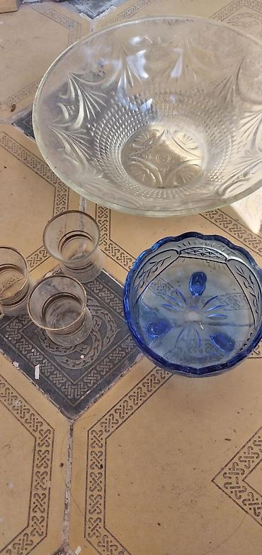 Çexiya Bohemia xrustal 2 ədəd stəkan 30 manat, 6 xrustal stəkan və nəlbəkisi 80 manat.2 xrustal mürəbbə qabı 35 manat,Tort boşqanı 6 ədəd Karacadan 15 manat,2 dekorativ qab 38 manat