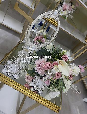 İdeal veziyyetdedir.12 eded xonçadır.Üzerinde elave olaraq verilir/12 eded bahalı modelden yığılmış güllər-2 manken bahalı modelden,2 taxta veşilka,2üzük qabı ve üzük mankeni,4 eded göbelekkimisinden.