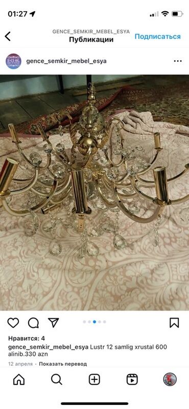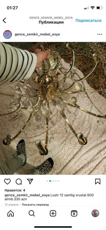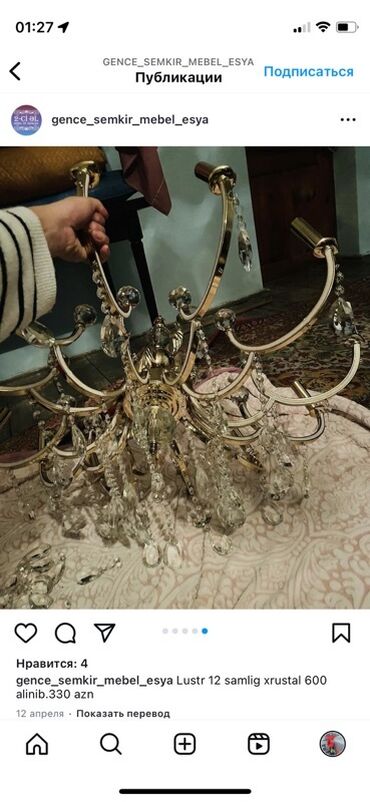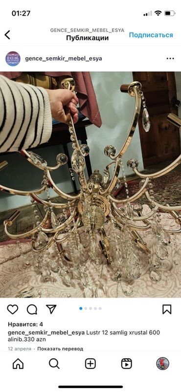 Klassik üslubda kristal çilçıraq - Material: çoxsaylı asılmış kəsimli kristal/prizma daşlar, metal karkas (qızılı-ton dekor). - Dizayn: barokko motivli budaqlı konstruksiya, şam formasında patron ...