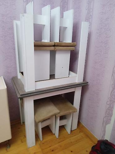Paslanmayan metaldan hazırlanmış müxtəlif ölçülü mebel dəsti. Dəstə