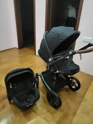 Uşaq arabası 3‑də‑1 (kombi sistem)+shezlong usdunde hamsi ela veziyyetdedi - Şassi: yığcam, yüngül və möhkəm konstruksiya; təkhərəkətli qatlama mexanizmi. Ön təkərlər fırlanan/ fiksasiya olunan, ...