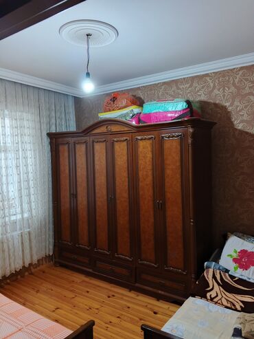 - İkinci otaq: klassik üslubda böyük 6 qapılı qarderob, pərdəli pəncərə, taxta döşəmə, divan/çarpayı.