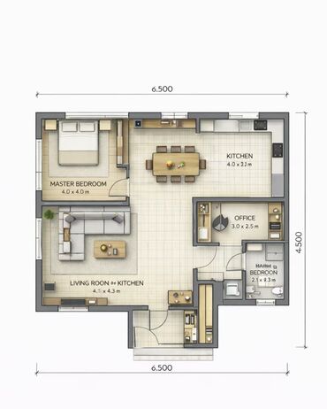 Müasir, səmərəli plan axtaranlar üçün rahat yaşayış, iş və istirahət zonalarının düzgün balansı.