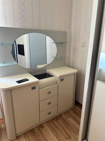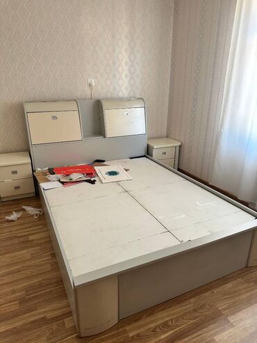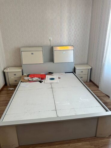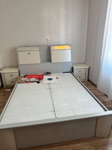 Klassik üslubda yataq otağı dəsti - Rəng: krem/şampan tonları, qızılı ornamentlərlə - Üslub: klassik, oyma dekor və relyefli detallar Dəst tərkibi: 1) Geniş ikinəfərlik çarpayı - Yumşaq başlıq: k...