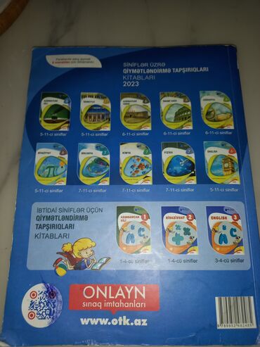Arxa cilddə əlavə olaraq siniflər üzrə Qiymətləndirmə Tapşırıqları kitabları (2023) barədə məlumat, ibtidai siniflər üçün toplular və onlayn sınaq imtahanları (www.otk.az) göstərilib.